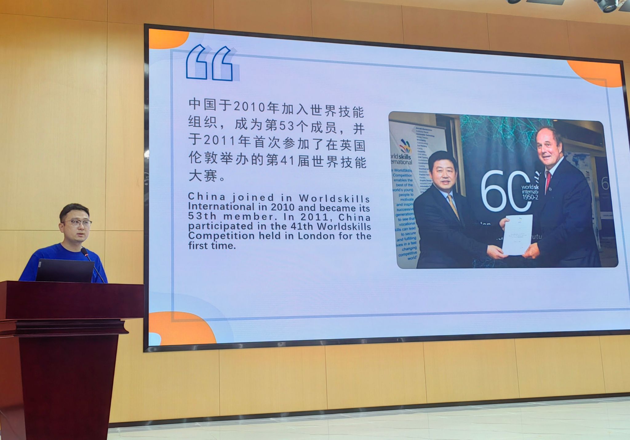 活动现场,同学们深度领略了世界技能大赛的无穷魅力。首先,研究中心董其才老师声情并茂地分享了47 届世界技能大赛的完整历程,从各国选手齐聚一堂的盛大开幕到赛场上选手们紧张激烈的角逐,同学们被我国选手追求卓越、超越自我的精神深深触动。