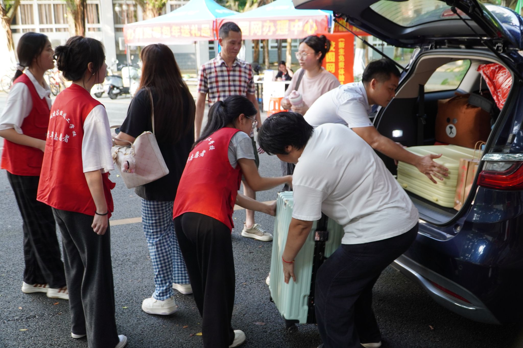 报到现场,人文艺术楼二楼大堂热闹非凡。负责迎新的老师与志愿者们早已整装待发,他们以最饱满的热情和最灿烂的笑容迎接每一位新生的到来。从指引报到流程到协助搬运行李,从耐心解答疑问到分享校园生活小贴士,志愿者们的身影无处不在,用实际行动诠释着“奉献、友爱”的志愿精神,让新生们感受到了城建大家庭的温馨与和谐。