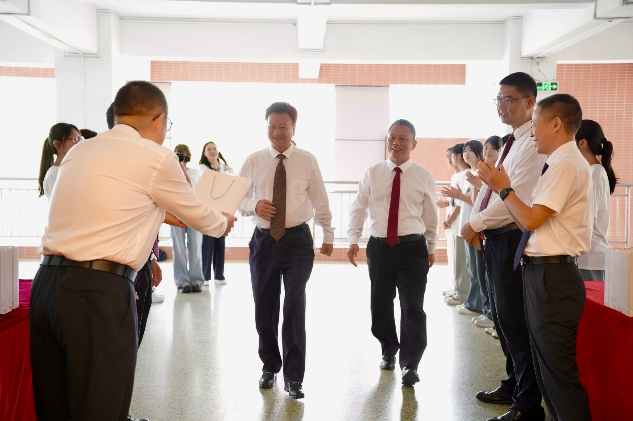 学校校务管理委员会主任张亚斌博士、副主任于晓光,党委书记、校长叶忠,党委副书记、副校长林勇刚,副校长肖创海、计林,校长助理樊哲以及全体教职员工参加了此次大会。大会由学校党委副书记、副校长林勇刚主持。