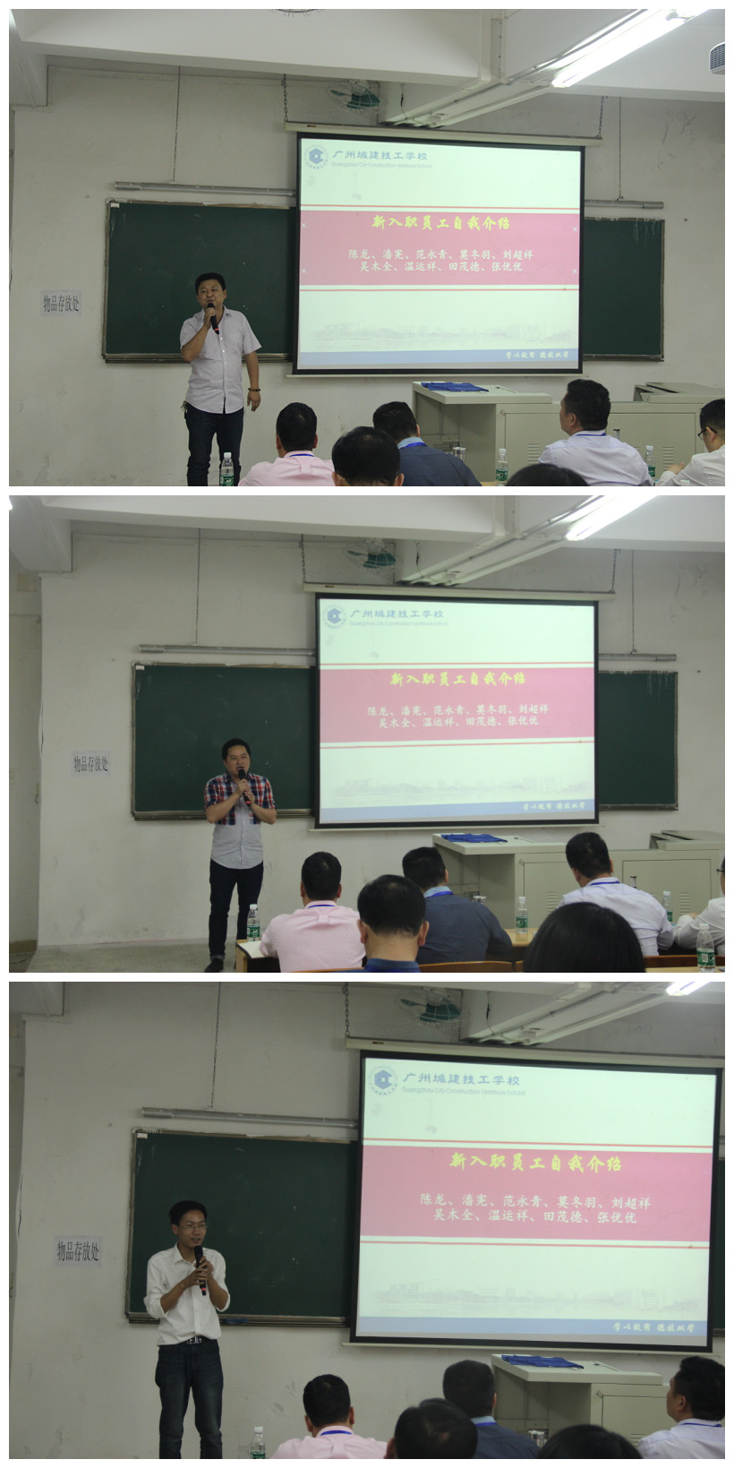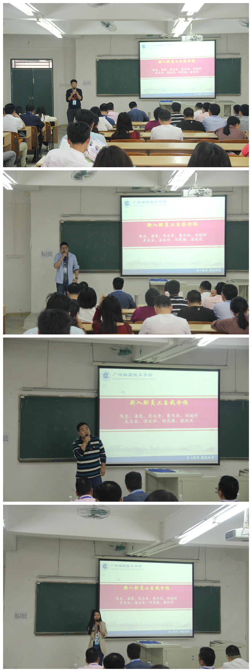 会议伊始,2017—2018学年第二学期新入职教师依次上台作自我介绍,他们主要从自身的兴趣爱好、任教专业等展开介绍,并希望学校领导和与会同仁在今后的工作中给予支持和指教,共同为学校的发展添砖加瓦。