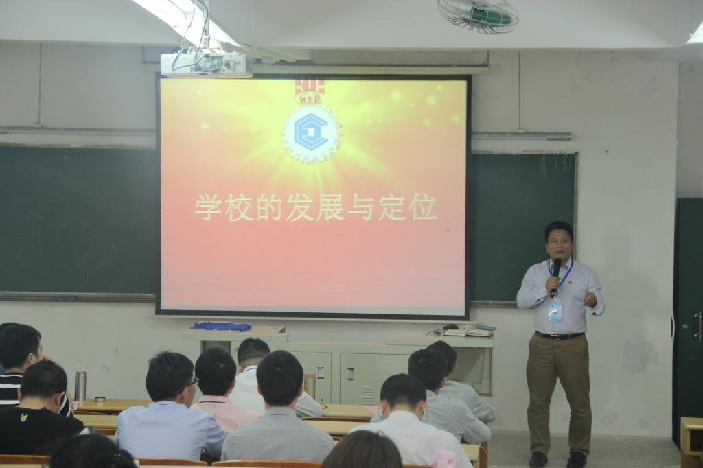 廖校助作2018年秋季招生工作安排。他从技工教育的吸引力延伸到学校的吸引力,全方位地为教职员工讲授多种招生宣传技巧,继而对2018年秋季招生工作要点进行详细的讲解,他希望全体教职工群策群力做好学校2018年秋季招生工作。