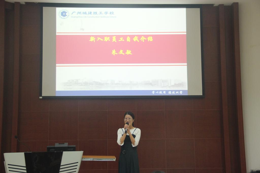 会议伊始,新入职教师朱文敏老师上台作自我介绍,她讲述了加入城建大家庭从陌生到熟悉的变化过程,并表示将学校当作自己的新家,必会用心对待,希望同事们给予更多的支持和关照。