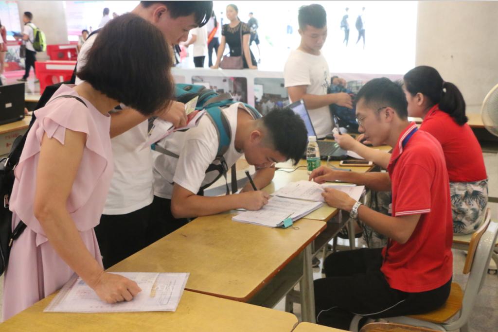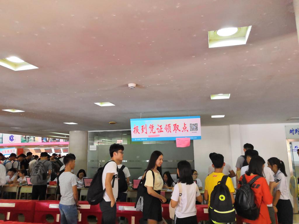 2018年8月25日,学校在人文艺术楼二楼大堂喜迎2018级新同学。校长叶忠,副校长肖创海、计林、林勇刚,校长助理廖志友率领全体迎新工作人员参加了本次迎新工作。