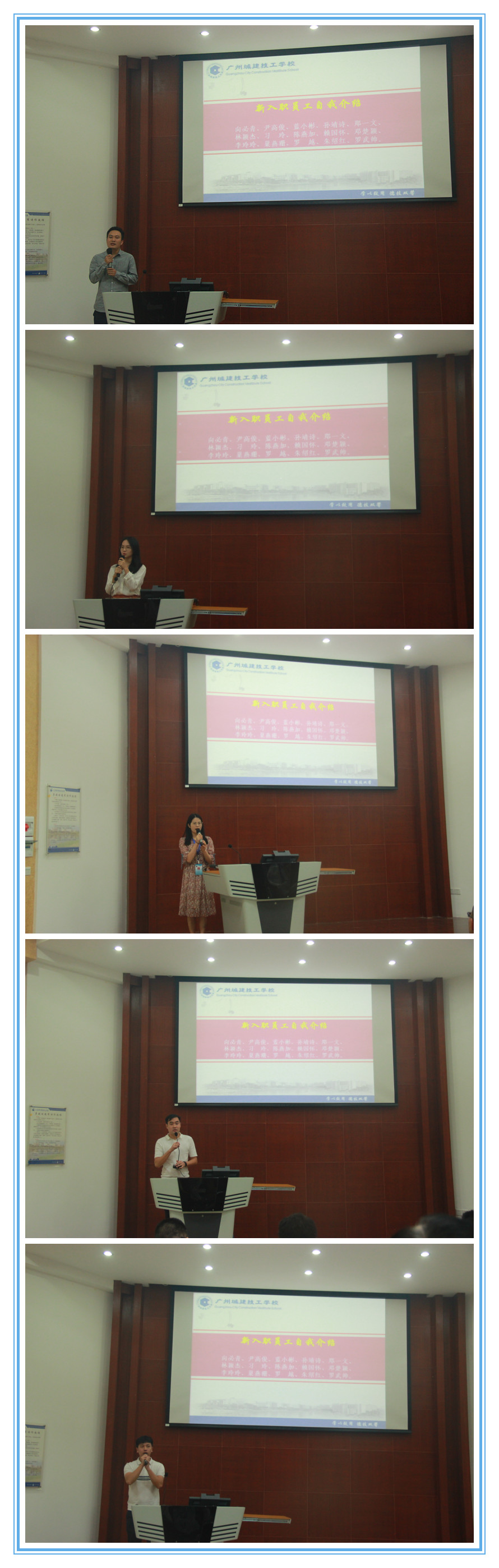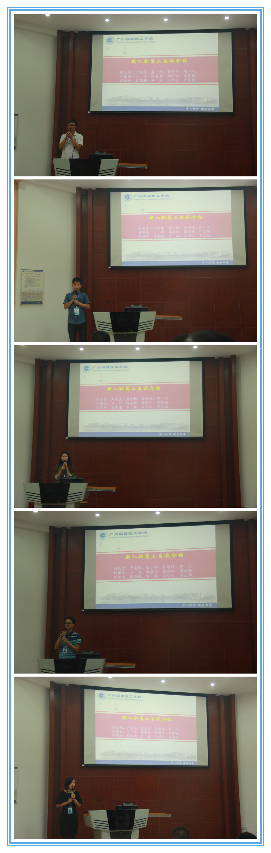 会议伊始,15位新入职教师依次上台作自我介绍,他们简要阐述了自己的个人历程,并为加入城建大家庭而感到荣幸,希望在今后的工作中得到领导和同事们更多的帮助和指导。