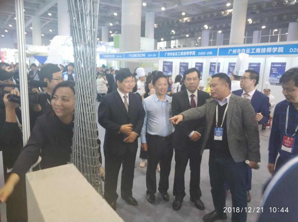 展览期间,国家人力资源和社会保障部职业能力建设司张立新司长、广东省人力资源和社会保障厅陈奕威厅长一行分别亲临学校展区观摩指导,学校叶忠校长分别向张立新司长和陈奕威厅长介绍了学校展出作品情况。