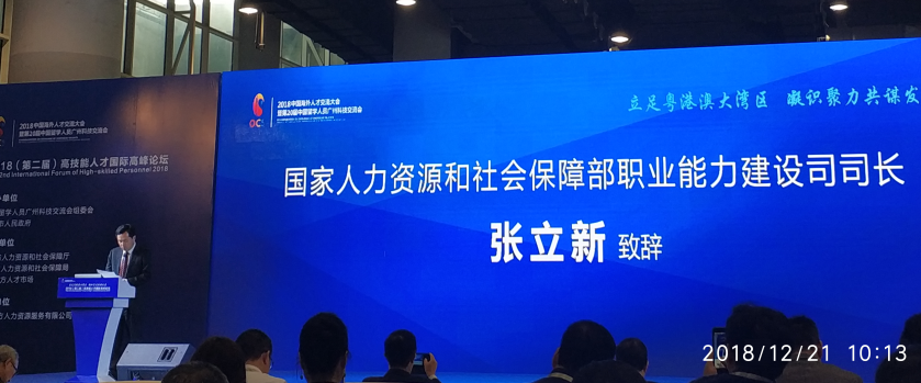 论坛上,国家人力资源和社会保障部职业能力建设司张立新司长致辞,表示高技能人才培养对粤港澳大湾区发展尤其重要,各技工院校应加强对高技能人才培养。