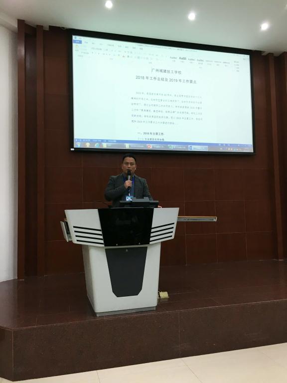 会上,王志坚副科长回顾了2018年招生工作开展情况,并对2018年招生工作提出了新的要求。叶忠作重要讲话,他简要概述了学校2018各项工作的开展情况,并部署了学校2019年的工作要点。同时,叶校长还在会上强调2019年是新中国成立70周年,是广州市技工院校“品质建设”年,更是我校办学10周年,希望全体教职工紧紧围绕2019工作要点和“聚焦建筑、彰显特色、培育品牌”的发展思路,共同努力提升学校的核心竞争力。