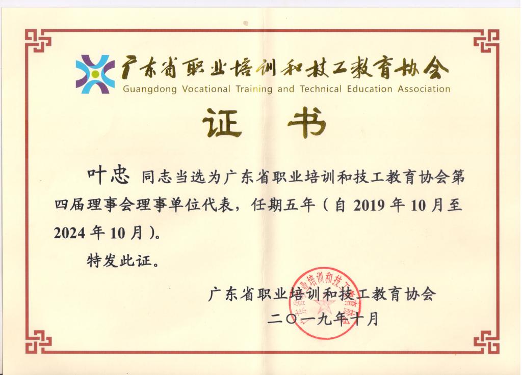 经与会代表无记名投票表决,选举出第四届理事会会长、常务副会长、副会长、秘书长、理事、监事长和监事。我校当选为广东省职业培训和技工教育协会第四届理事单位,校长叶忠同志当选为广东省职业培训和技工教育协会第四届理事会理事单位代表。