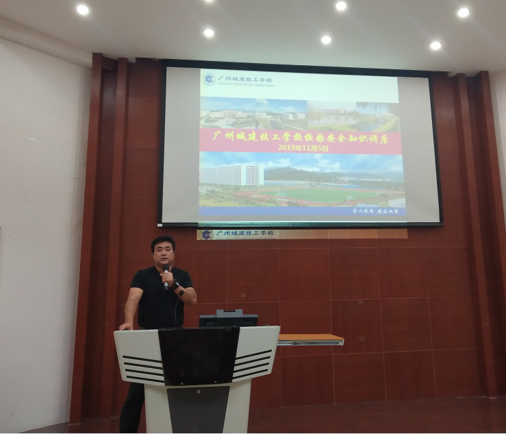 为了提高师生安全意识,加强教育安全工作,创建平安校园。2019年11月6日,学校在建工机电楼A101报告厅开展校园安全知识讲座。校长叶忠,副校长肖创海、计林、林勇刚,校长助理廖志友,全体教职工以及学生代表参加了本次讲座。