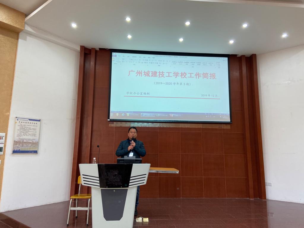 2019年12月3日,学校12月份全体教职员工会议在建工机电楼A101报告厅顺利召开,校长叶忠,副校长肖创海、计林、林勇刚,校长助理廖志友及全体教职工共同参加了本次会议。会议由学校办公室主任刘振兴主持。