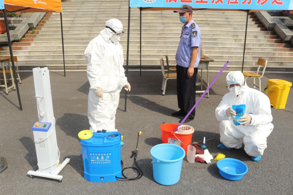 返校后,每天早、中、晚体温监测不能少。课堂上学生的身体状况更是要随时留意,做好应急准备。4月30日,下午14:10时,任课老师在教室对学生进行午检,发现一名学生体温38.5度。经检测学生体温异常后,学校立即启动模拟疫情应对,围绕“发现--上报--应急处理--校医预检--分诊--隔离--转运--消杀”等重点环节进行全流程操作、全过程处置的演练。
