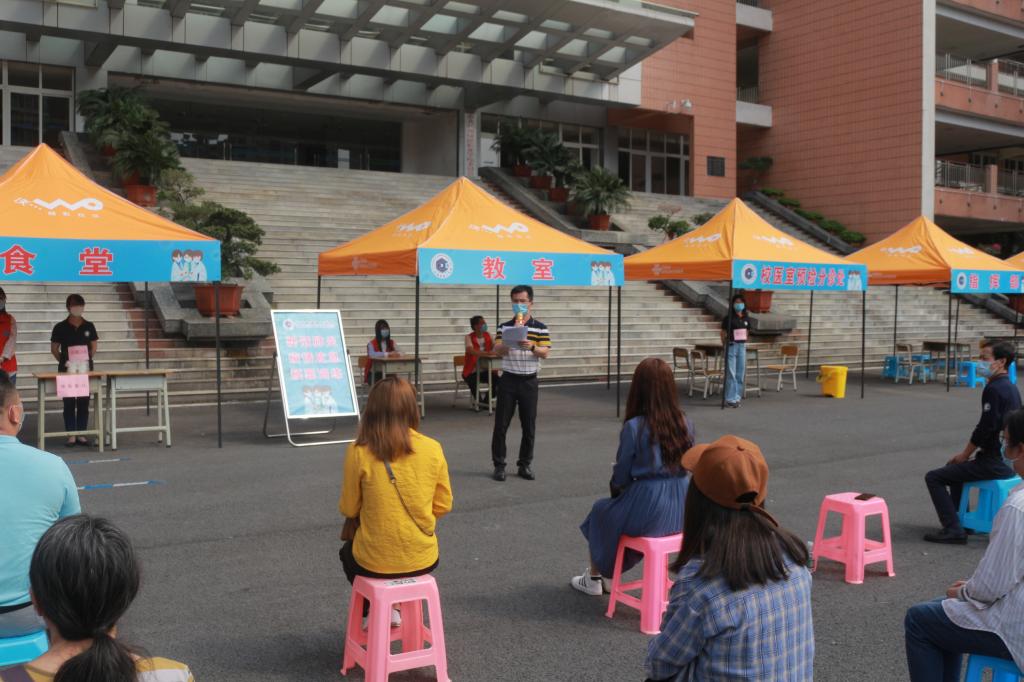 正式演练开始前,林勇刚副校长作动员讲话。林校强调通过本次演练,让每一位教职员工都熟知疫情防控突发事件处理流程,希望教职工把各项演练流程和措施内化于心,真正运用到实际工作中去,为学生返校做好充分准备。