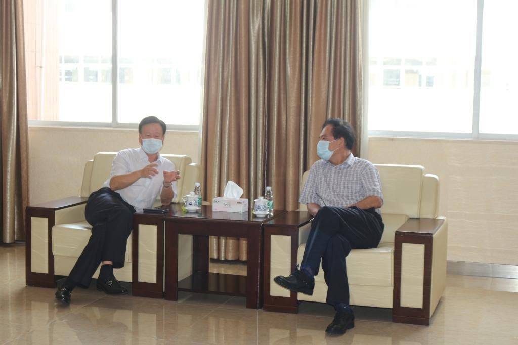 学校校长叶忠与督查督办组带队领导巢海文交流