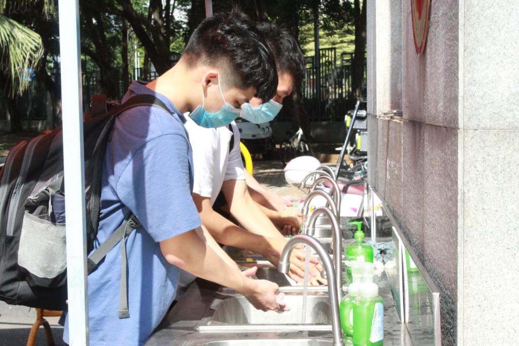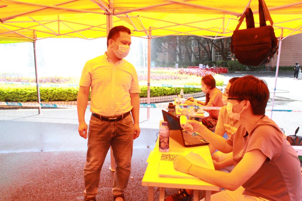 27日当天,所有工作人员各司其职,引导学生依次排队进行洗手、健康码扫描、检查电子健康卡、体温检测、安排学生入住等事宜,登记体温等健康信息。同学们也都按照老师的指示和要求,做好防护措施,安全入校。如果发现体温异常的学生,立即启动疫情防控应急预案,把学生转移到校医院接受隔离、检查。