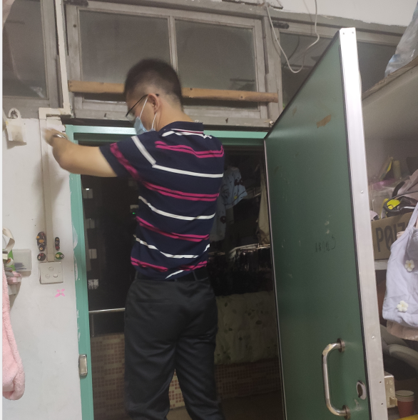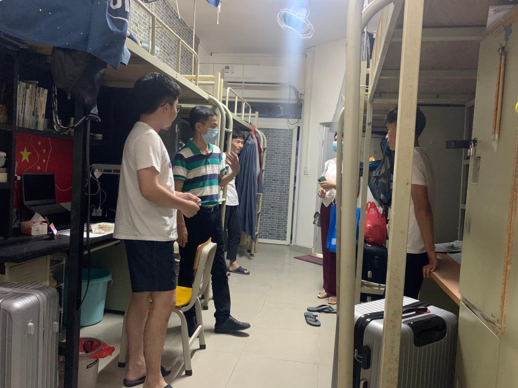 校领导了解学生情况和检查宿舍通风口