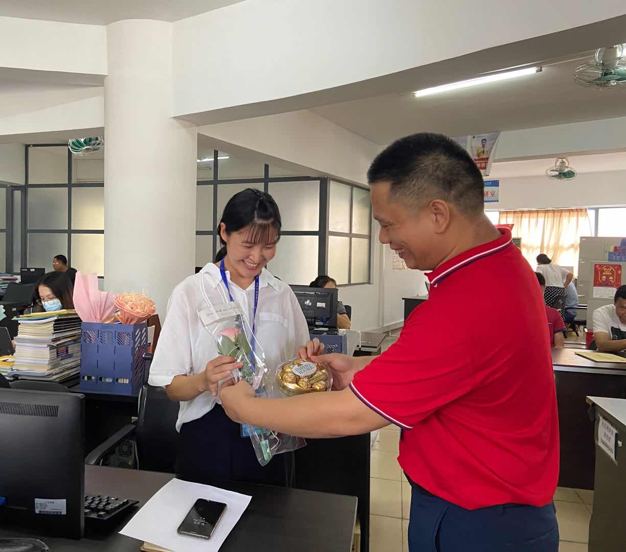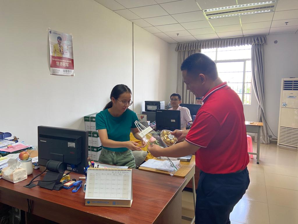 当天上午,学校叶忠校长,学校党总支书记、学校工会主席林勇刚前往学校各办公场所看望每个岗位教职员工,为他们献上鲜花和礼品,感谢他们为学校建设发展做出的积极贡献。慰问期间,叶校长和老师们亲切交流,了解老师们的生活和工作情况,叶校长表示,学校建设发展离不开全体教职员工的不懈奋斗,勉励老师们在今后的工作中,以高度的责任感,积极为学校建设发展出谋划策,勇挑重担,攻坚克难,奋力开创学校事业发展的新局面。