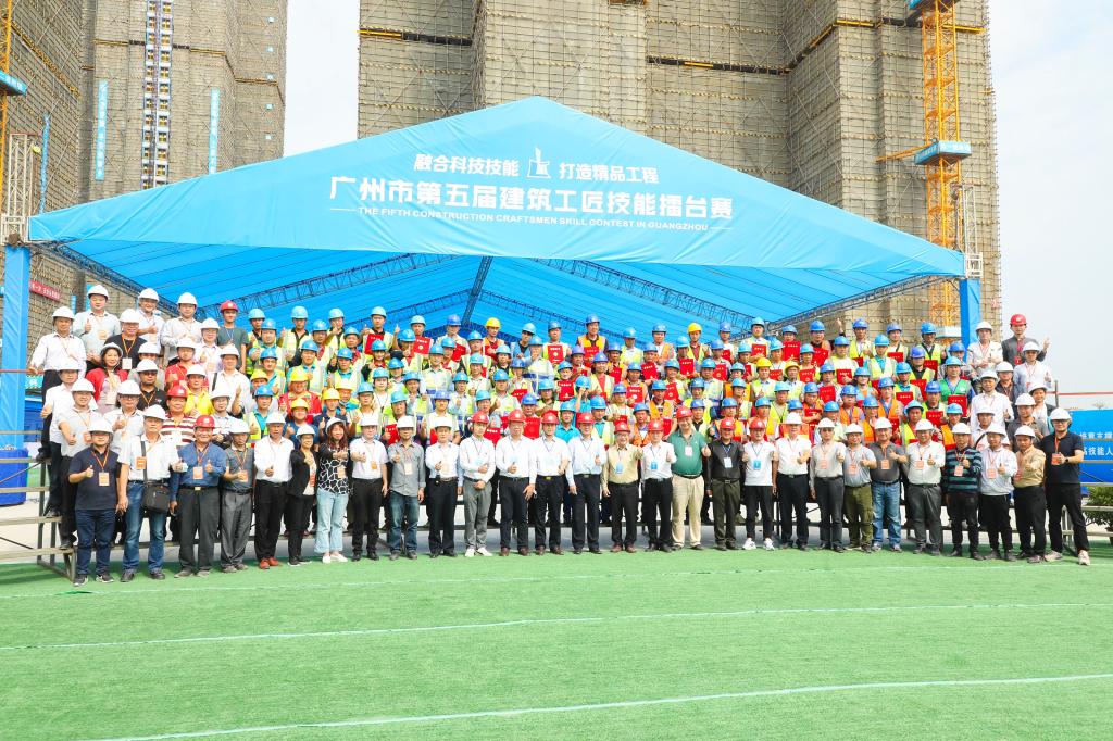 陈君辉老师(左一)参加广州市第五届建筑工匠技能擂台赛