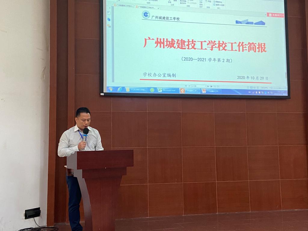2020年11月17日,学校11月份全校教职员工会议在建工机电楼A101报告厅顺利召开,校长叶忠,副校长肖创海、计林、林勇刚,校长助理廖志友及全体教职工共同参加了本次会议。会议由学校办公室主任刘振兴主持。