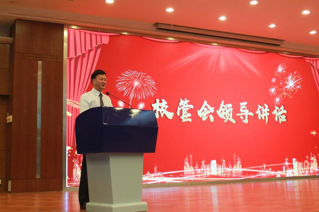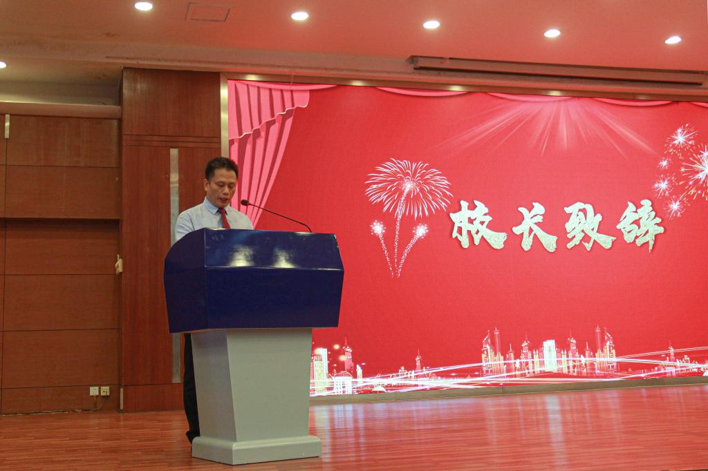 最后,校务管理委员会主任张亚斌博士作重要讲话,他对学校在上一学年的成绩表示肯定,他指出在学校领导班子有力的领导和团结带领下,经过全体师生员工共同拼搏,学校谢健强、林怡峰组成的参赛队伍荣获第一届全国技能大赛冠军,成功进入第46届世界技能大赛混凝土建筑项目国家集训队,学校与广东碧桂园集团达成了合作培养产业学院的协议,这些成就不断提高学校的水平和社会影响力。他强调,既然在座的我们选择了教育工作者这份神圣的工作,就要坚守初心,为党育人、为国育才,坚持立德树人,提高自身专业水平,使学生能更好地学习成长,在社会的文化传承和文明建设上彰显作为教育工作者的价值。同时,他指出学校从最初几十位专兼职教职员工起步,从一百多名学生发展,通过共同建设、共同创业、共同发展,靠着一批又一批、一代又一代城建师生的努力拼搏,发展到了如今在区域内有很大名声的学校。希望大家有居安思危的意识,共同支撑学校这个美好平台,发挥自己的价值,齐心协力、克服困难去赢得更好的未来。
