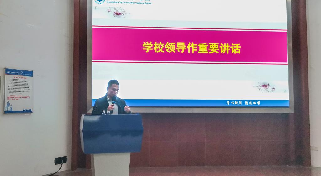 叶忠校长作重要讲话。他对新入职员工的加入表示欢迎,对获奖选手表示祝贺,对与会人员与学校共成长表示感谢。同时,叶忠校长结合《学校10月份工作简报》,重点强调了学校思政教育、专业建设、技能鉴定、质量管理、心理辅导、学生宿舍、督导工作等方面的内容,他希望全体教职员工要做好职业生涯规划,在有限的生命里创造无限的价值,助力个人的成长和学校的发展。