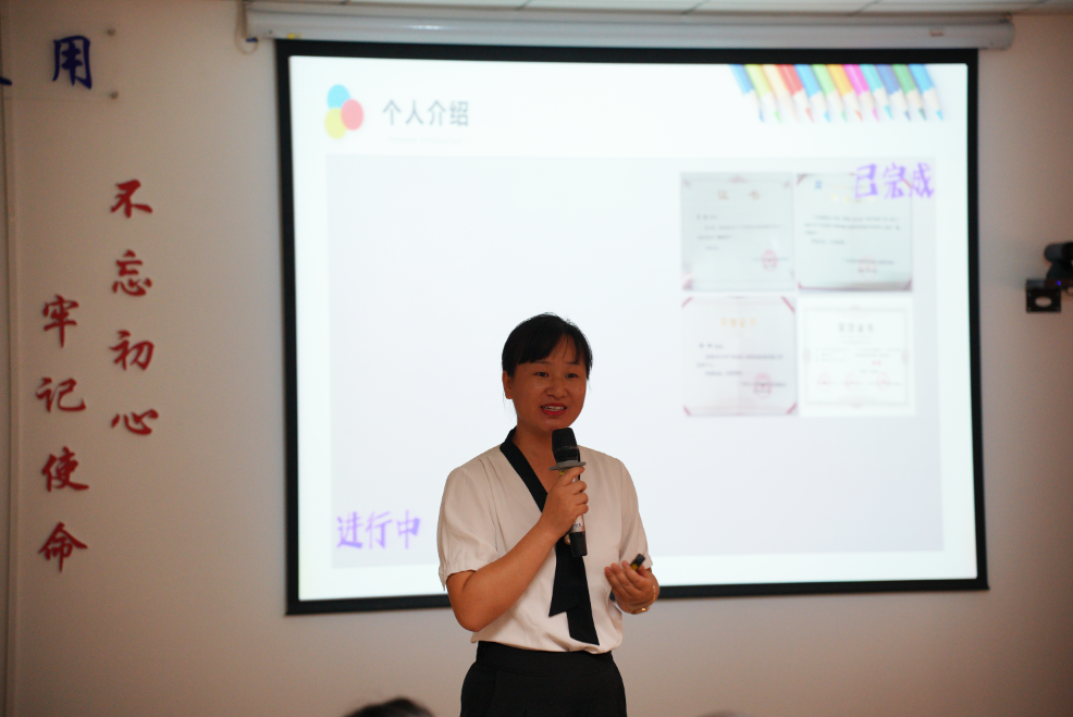 在下午的培训中,邀请了艺术设计系主任袁楠以《跳出舒适圈 遇见更优秀的自己》为题,进行了“从企业到教师角色转换经验”分享。她向新入职教师提出了“三要”,一要避免沉溺于自己擅长的事情,扩展自我;二要持续学习,将自我学习和向他人学习结合起来;三要合理规划前进的道路,接受改变过程中的变化。袁主任希望通过此次经验分享,让新入职员工更快适应城建的工作氛围,完成企业到学校的职业角色转换。