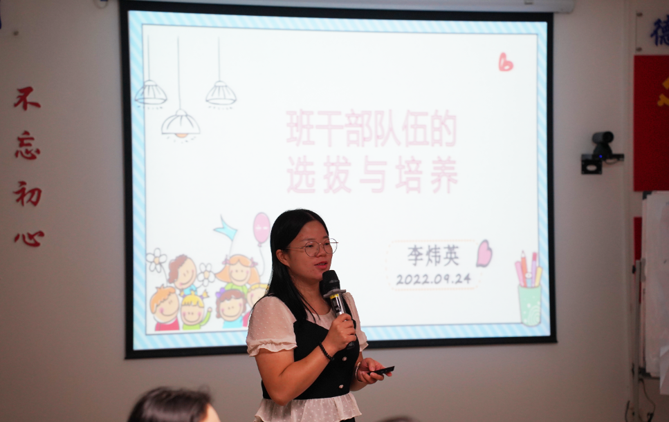 李副主任作《班干部的选拔与培养》经验分享