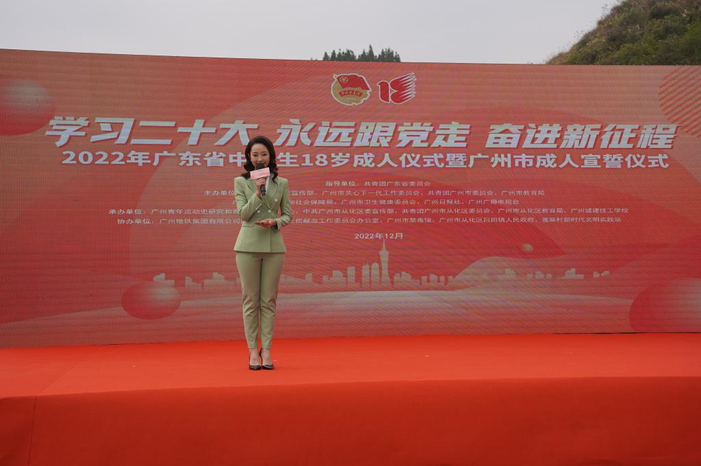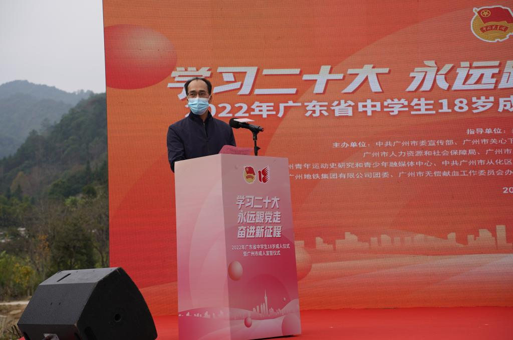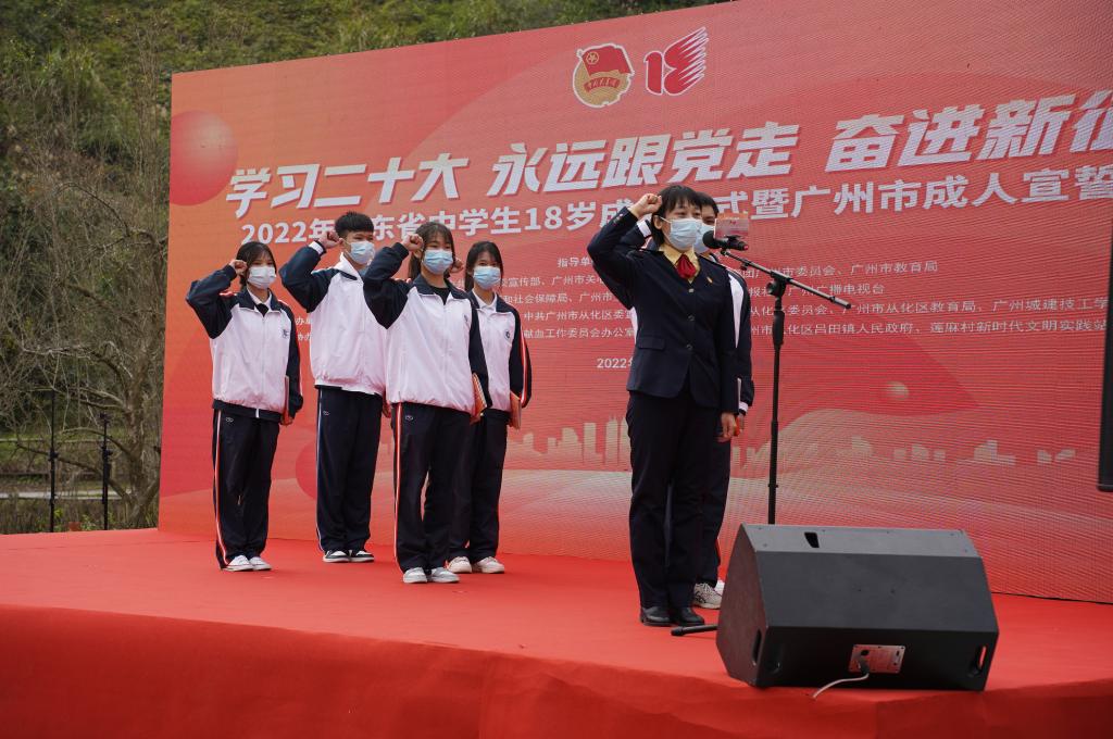 2022年12月13日上午,2022年广东省中学生18岁成人仪式暨广州市成人宣誓仪式在广州市从化区吕田镇莲麻村黄沙坑革命旧址纪念馆隆重举行。学校作为本次活动承办单位之一应邀出席。党委副书记、副校长林勇刚,学校副校长计林与30余名师生一同前往参加,共同庆祝第29个“广州成人宣誓日”。共青团广州市委副书记刘韵华一行出席了本次活动。本次成人宣誓仪式由广州广播电视台主持人朱英瑞主持。