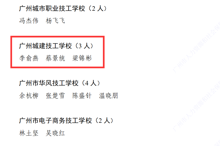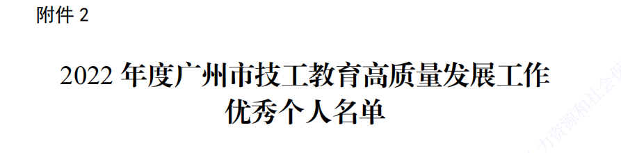 2022年度广州市技工教育高质量发展工作优秀个人名单