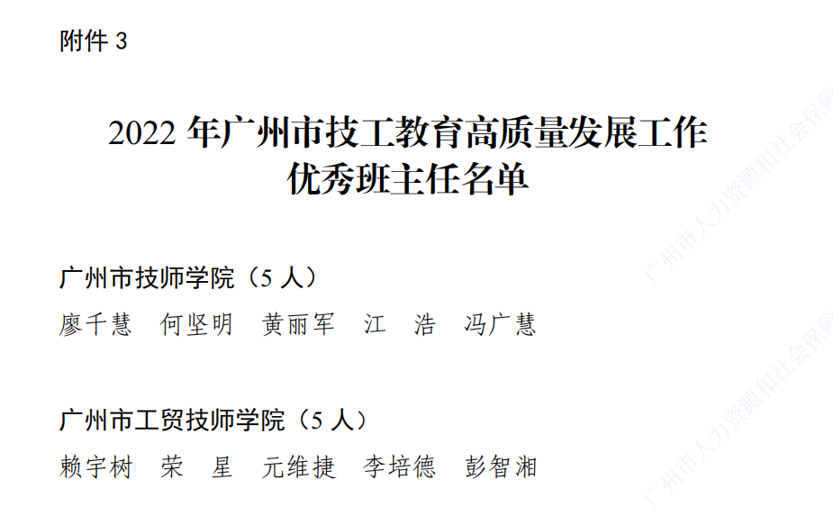 2022年广州市技工教育高质量发展工作优秀班主任名单