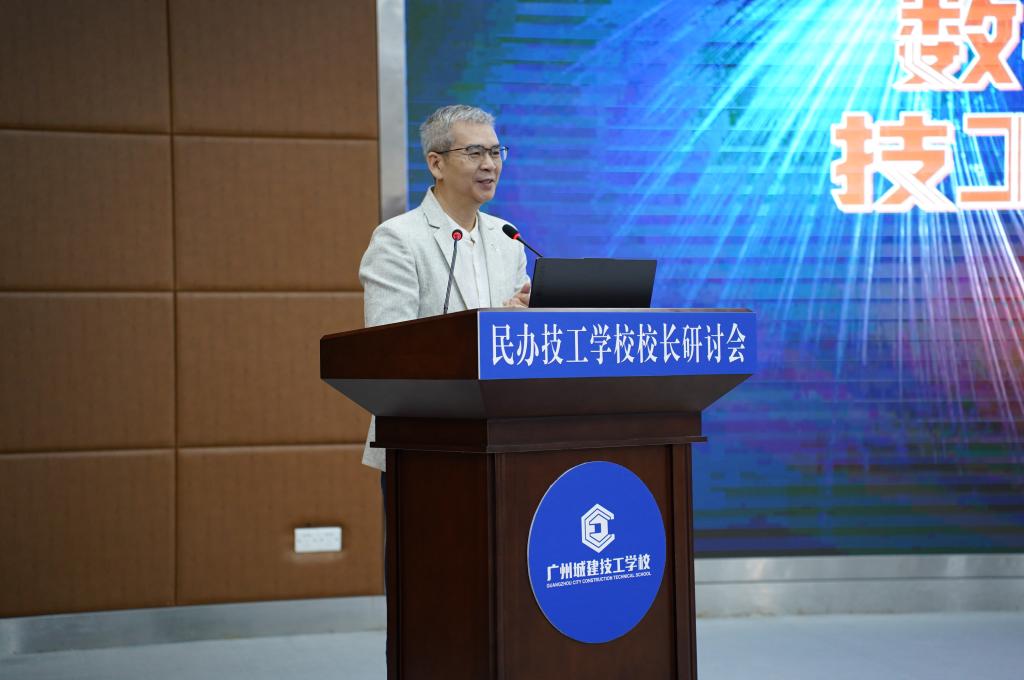 陈李翔副会长以题为“数字经济视野下技工学校转型发展”作了主旨报告。他从数字经济新时代、就业市场新需求、技工教育新学习三个方面入手,系统介绍了“十四五”时期技工教育面临新态势、新要求,他认为推动数字化专业建设以及传统专业数字化升级,已经成为当前技工教育的重点工作。