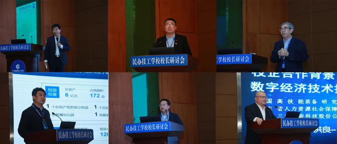 本次研讨会邀请了新华社、羊城晚报、广州日报、从化区融媒体中心以及中学生报等媒体记者参加。媒体朋友们对叶忠校长进行了现场采访。叶校长在采访中表示,承办本次研讨会,能够很好地交流和分享民办技工学校办学经验,谋划学校战略发展长远布局,强基础、提质量、增效益、补短板,着力推动民办技工教育高质量发展,并简要阐述了学校今后高质量办学的目标和发展方向。最后,杭州技师学院校长邵伟军,山西桐封技工学校校长王瑞,福建中华技师学院院长吴若雄,南京建康高级技工学校校长李振宇分别代表不同办学层次技工学校,围绕学校建设和发展作交流发言。中科泰岳(北京)教育科技有限公司华南区总监侯起新,广东三向智能科技股份有限公司董事长伊洪良分别以“新一代信息技术融合应用与高技能人才培养”、“校企合作背景下数字经济技术技能人才培养与探索”为主题进行分享。