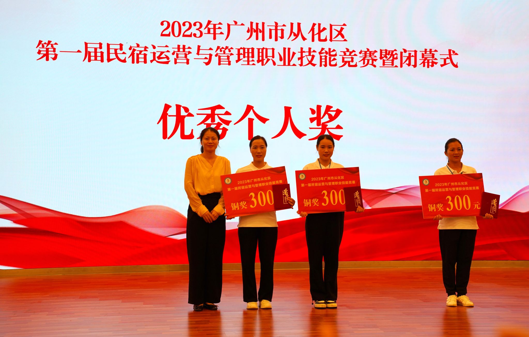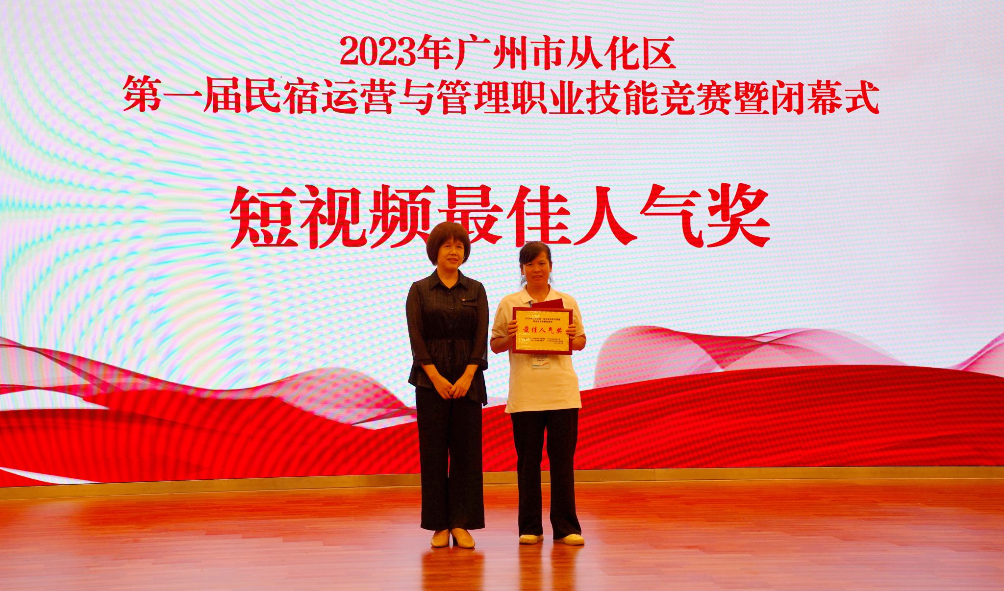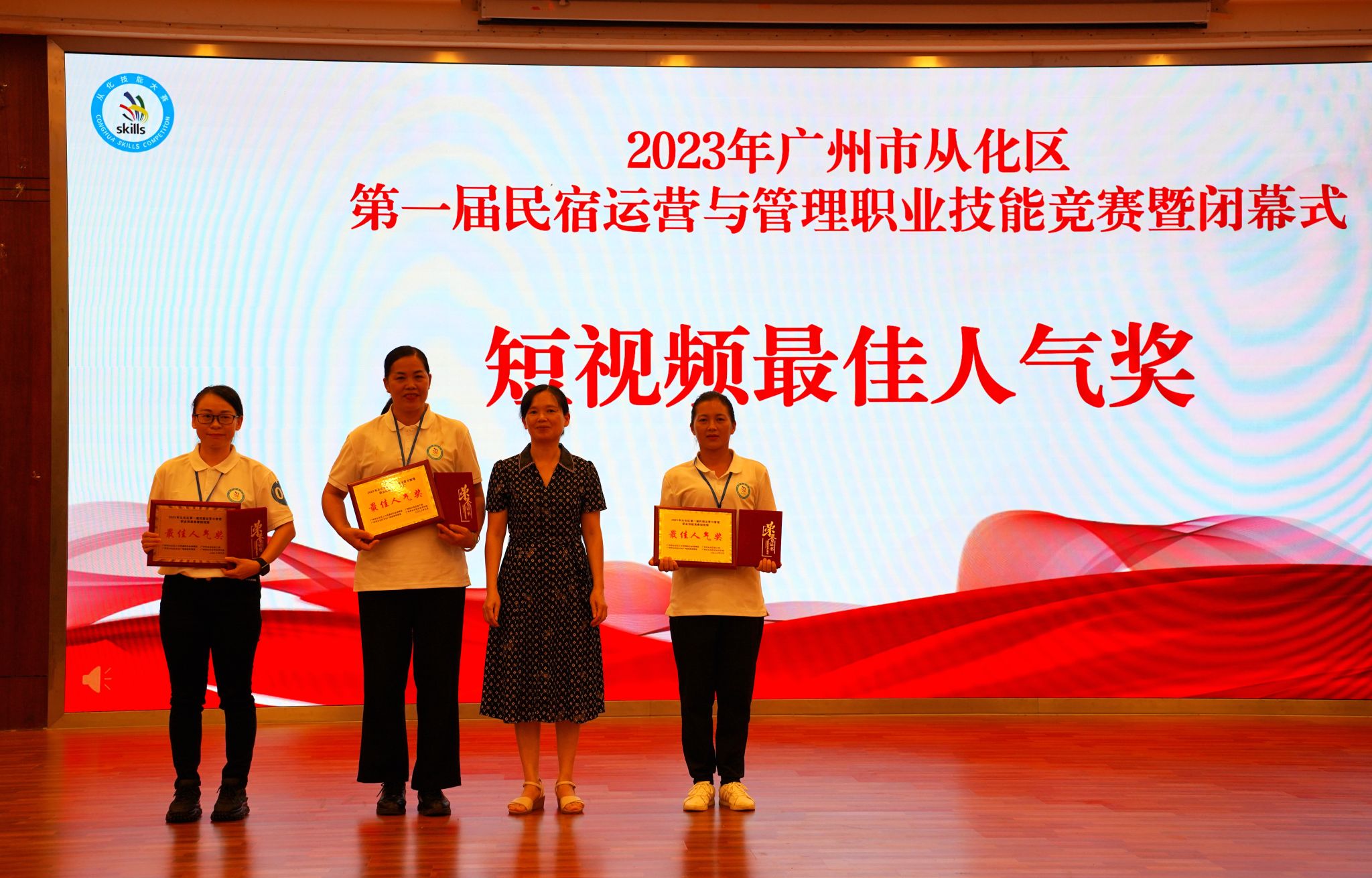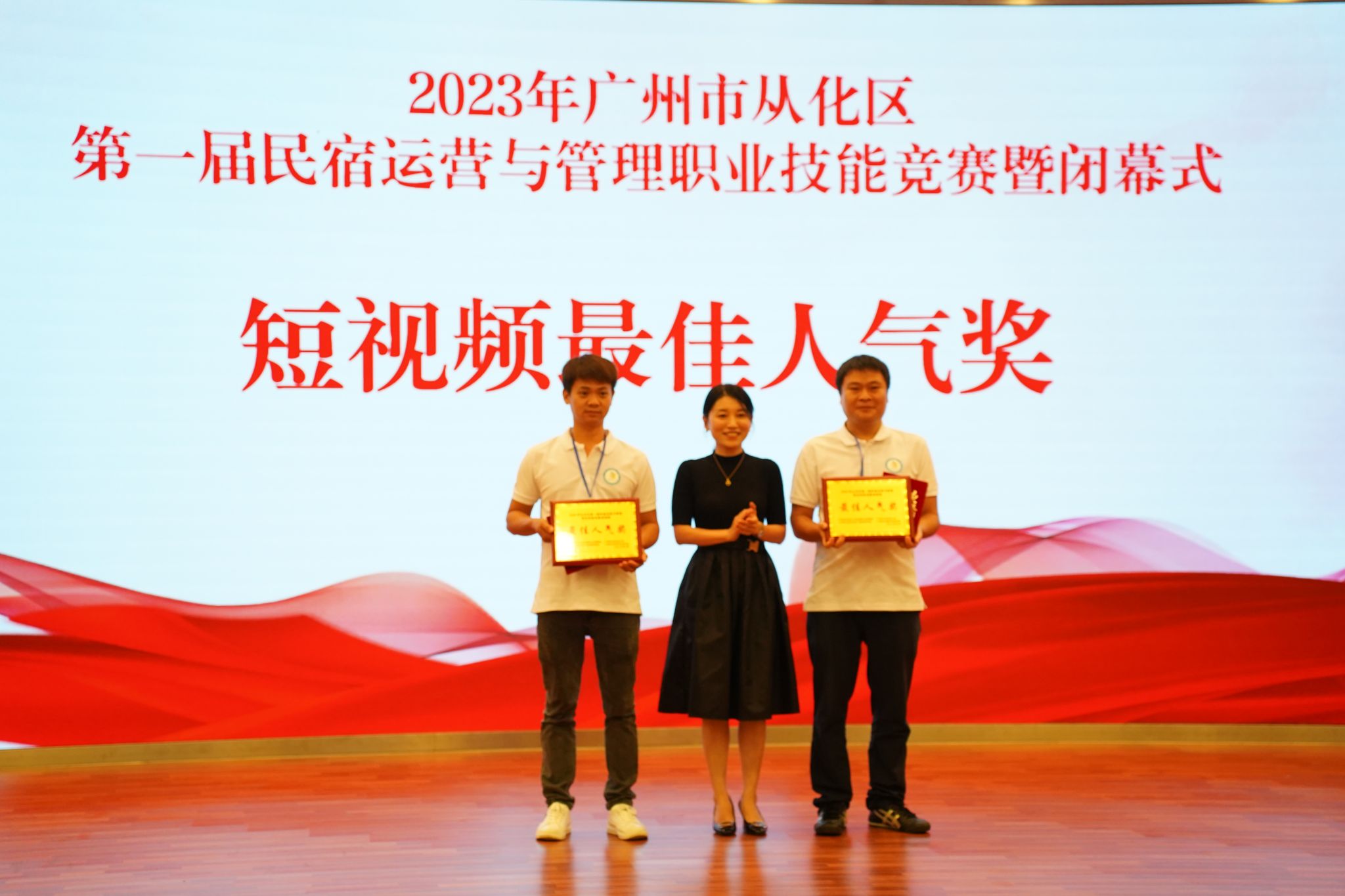 2023年9月13日下午,由广州市从化区人力资源和社会保障局、广州市从化区总工会、广州市从化区文化广电旅游体育局、广州市从化区农业农村局主办,广州城建技工学校、广州市公用事业技师学院、广州市从化区融媒体中心、广州市从化区各镇(街)、流溪人家民宿协会协办,粤港澳大湾区 (从化) 青年职业能力发展中心承办的首届民宿运营与管理职业技能竞赛在学校人文艺术楼四楼报告厅胜利闭幕,并举行了颁奖仪式。
