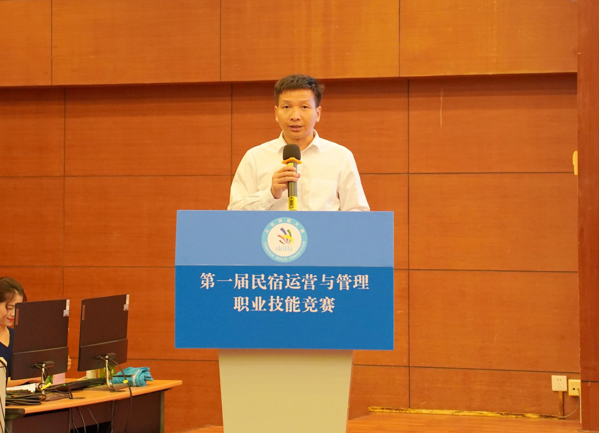 最后,广州市从化区人民政府副区长涂家朝进行总结讲话,他代表区政府,向在本次大赛中取得优异成绩的各位选手表示热烈的祝贺!向为从化区民宿行业长期奋斗在一线的广大从业者表示诚挚的慰问!向台前幕后付出辛勤劳动的工作人员表示衷心的感谢!他表示,本次竞赛的成功举办,是从化区走民宿产业发展之路、聚民宿产业人才之能、乘民宿技能竞赛之势推动从化区旅游业高质量发展的生动实践。这次竞赛为从化区探索民宿高质量发展提供可学习的案例、可复制的经验和可推广的做法。他强调,大家要以技能竞赛为契机,转化和巩固竞赛成果,大力弘扬工匠精神,培养选树一批富有责任感、运营技能高超、管理娴熟的民宿人,发挥典型示范作用,全面提升从化区民宿产业从业人员的服务水平、职业技能和综合素质,全面提升粤港澳大湾区从化青年的职业能力。涂副区长向参会人员提出了三点希望:一是希望获得奖项的个人以这次获得的荣誉为新出发点,再接再厉,充分发挥模范带头作用,在我区民宿行业高质量发展中勇立潮头;二是希望广大民宿运营与管理者们继续弘扬并践行“心心在一艺,其艺必工;心心在一职,其职必举”的工匠精神,刻苦钻研技能,摒弃浮躁、久久为功,在高质量发展的潮流中绽放光彩;三是希望各相关单位以这次竞赛为契机,更加重视技能人才队伍建设,培养造就更多具备良好职业素质、更好服务于人民群众的高品质生活需求,为促进农村更美、农业更强、农民更富发挥作用,为推动从化高质量建设绿色发展示范区贡献力量!