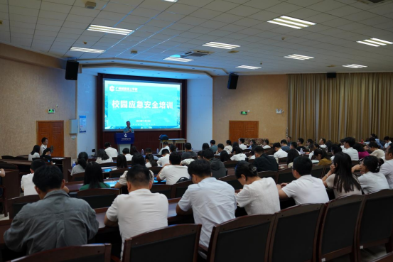 为进一步做好校园安全工作,提高学校教职工的风险应急处置能力,掌握应急安全知识。2023年11月10日下午,学校在建工机电楼101A报告厅开展校园应急安全培训。全体教职工参加了本次培训,培训由学校办公室副主任梁锦彬主持。