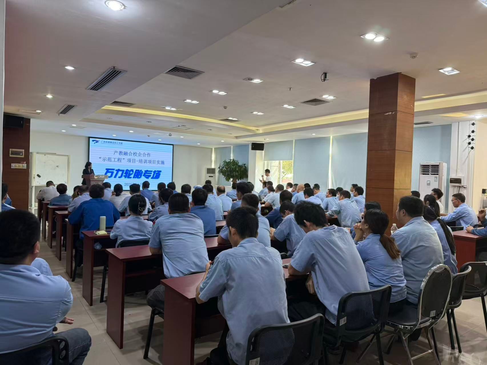 11月15日,产教融合校企合作“示范工程”项目万力轮胎培训专场在企业厂区内顺利举办。本次培训以“送教上门、精准赋能”为核心,将院校专业技能系统化资源直接下沉至企业生产一线,为企业技术骨干量身定制系统化培训方案,实现了教育链、人才链与产业链、创新链的精准对接。
