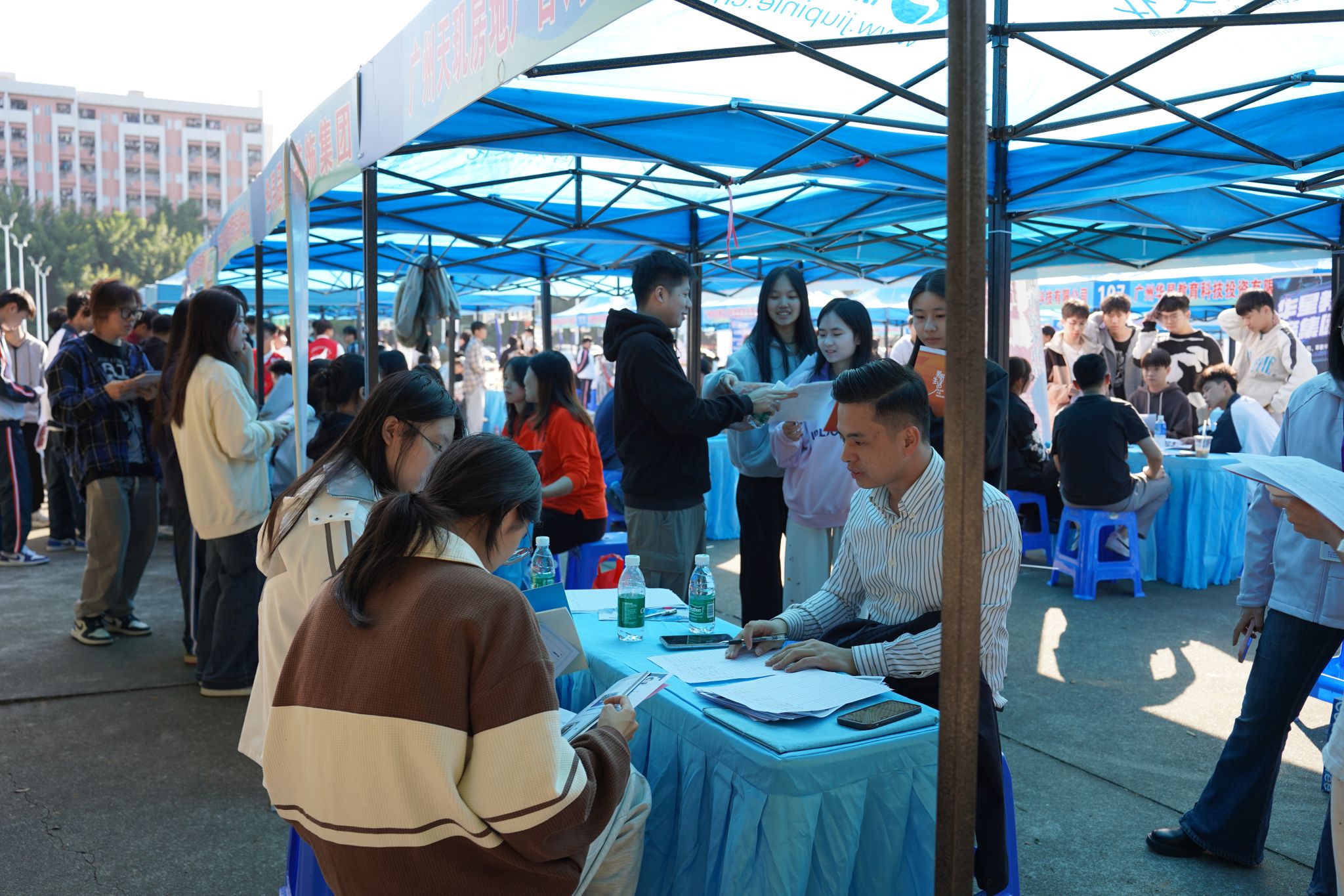 2025年11月26日,广州市“阳光就业”毕业生系列招聘活动——广州城建高级技工学校专场在学校三区文体广场成功举办。