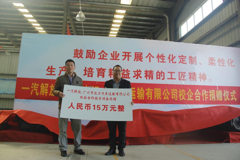 仪式上,企业向学校捐赠了教学设备。叶忠校长代表学校对广州市运力汽车运输有限公司的捐赠表示由衷的感谢,期待通过合作,与公司建立紧密与持久的战略合作关系,在多领域多方面开展更深入的合作,构建校企合作的新平台。张思军总经理在讲话中对学校学生优秀的专业技能和爱岗敬业精神予以充分肯定。他表示,校企合作对于职业教育人才培养具有重要意义,期待深化与学校的合作,促进互利共赢。李博艺总经理也肯定了双方在人才交流、技术研发、学生实习就业等方面达成的共识,期望通过合作进一步整合双方的优势资源,实现共赢。