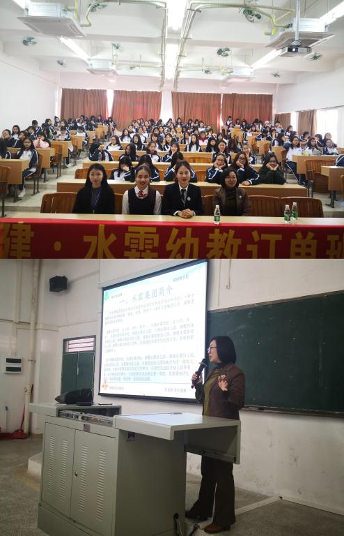 仪式开始,游英总园长对水霖集团作详细介绍,让学生充分了解水霖的办学情况、未来发展。除此之外,游园长还分享了自己从业20年以来的工作经验和感受,告诫同学们从事幼师行业,一定要有一颗爱教育、爱孩子的心。而水霖是一个很大的平台,只要同学们愿意努力,愿意去学习,一定会得到更大的收获。