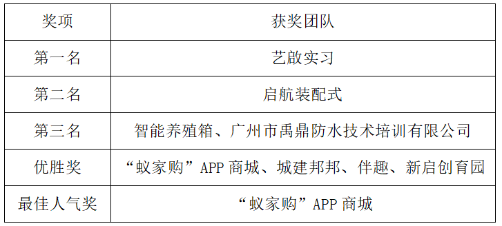 本次大赛获奖团队如下: