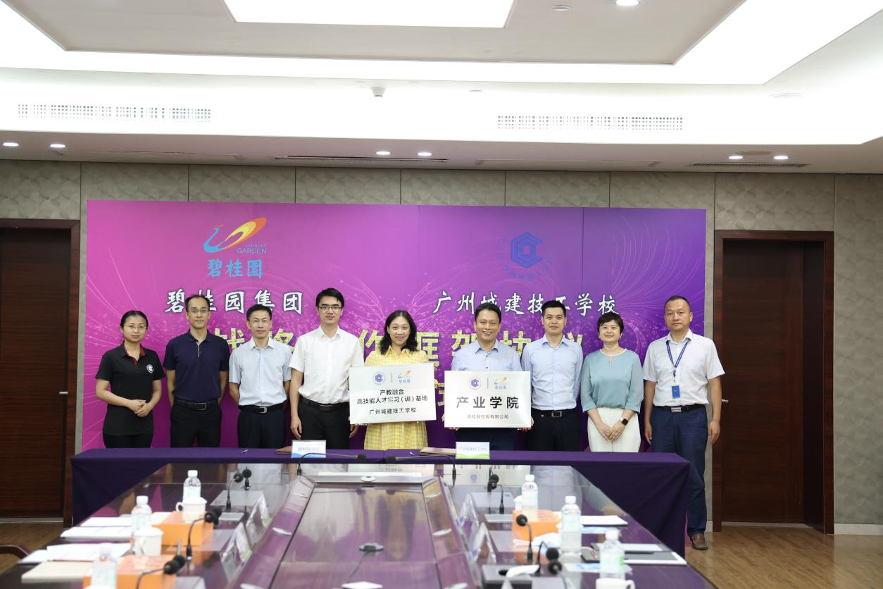2021年7月12日,广州城建技工学校与碧桂园集团产业学院签约及授牌仪式在碧桂园集团举行。碧桂园集团党委副书记、集团副总裁、精准扶贫乡村振兴办公室主任李静,党委委员、集团办公室副主任兼党群社责部总经理徐舒扬,集团办公室党行政管理部总经理田冲,以及集团办公室党行政管理部、党群社责部、博智林机器人公司等领导,学校校长叶忠、副校长计林、校企合作办公室主任余立棋以及建筑工程系张越老师参加签约仪式。签约仪式前,叶忠校长一行参观了博智林机器人基地、凤桐花园项目(住建部智能建筑试点项目)。