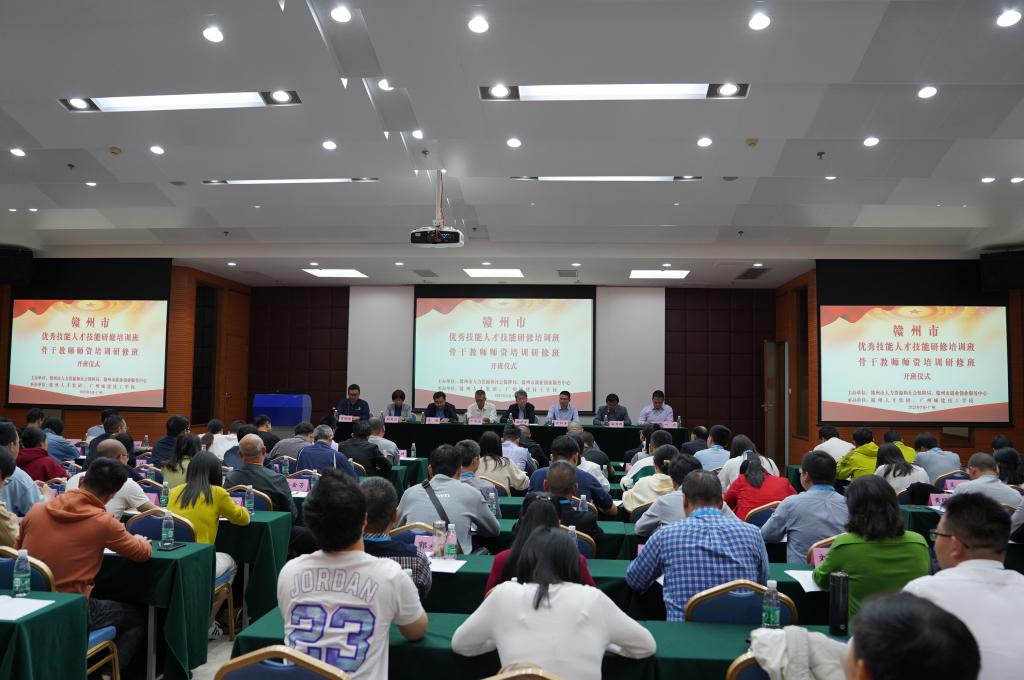 2023年3月20日,由赣州市人力资源和社会保障局、赣州市就业创业服务中心主办,赣州人才集团和我校承办的第二期赣州市优秀技能人才技能研修培训班、赣州市技工院校骨干教师师资培训研修班顺利开班。江西省就业创业服务中心党委委员、副主任陈学军,江西省就业创业服务中心技工教育研究处副处长官红平,赣州市就业创业服务中心三级调研员李俊,赣州市就业创业服务中心副主任俞晋辉,广州市人力资源和社会保障局调研员苏智永,广东省技工教育师资培训学院党委书记、院长郑楚云,学校党委书记、校长叶忠,以及100名参训学员参加开班仪式。开班仪式由学校副校长肖创海主持。