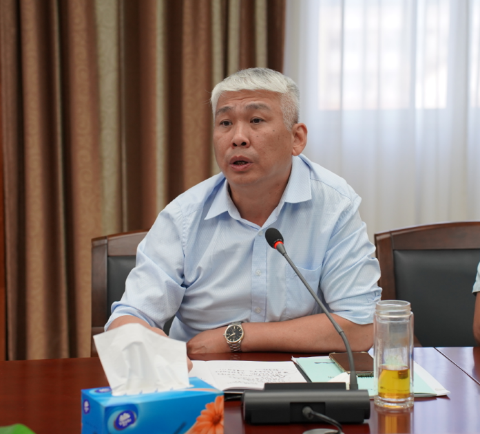 首先,校长助理兼招生办公室主任廖志友对学校2022年招生工作进行了全面总结回顾。他介绍了我校招生的基本情况,分析了地域生源结构及专业开设情况,总结了今年招生工作的新做法,同时结合目前招生形势及政策,提出了2023年的招生工作对策。