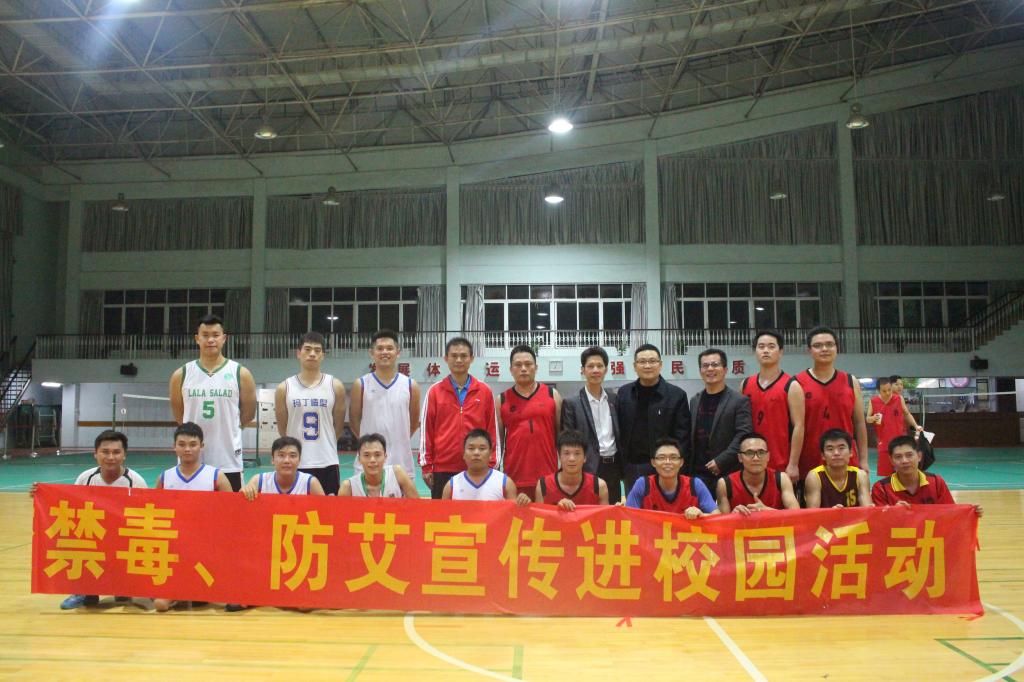 为了加强校际交流,在强健体魄的同时,为禁毒宣传代言,2017年11月28日,我校与与广州市从化区高级技工学校在凯旋宫体育馆开展了教职工篮球友谊赛。从化技校由校长助理吴轩率队,我校由校长叶忠率队参加了本次篮球赛。