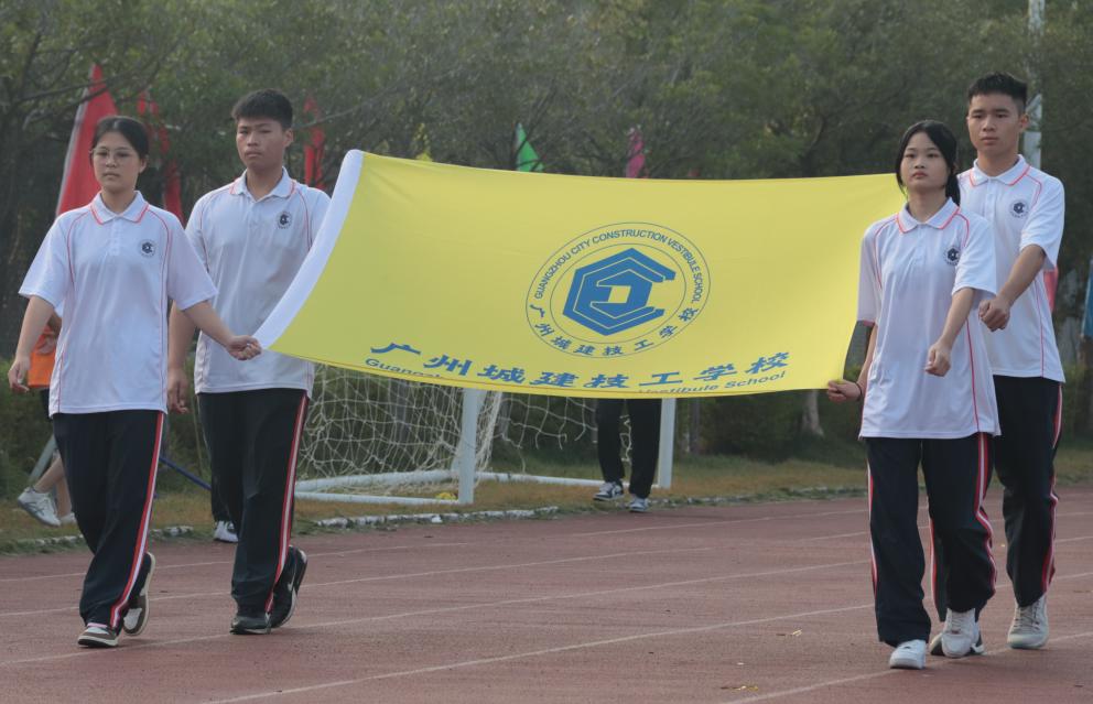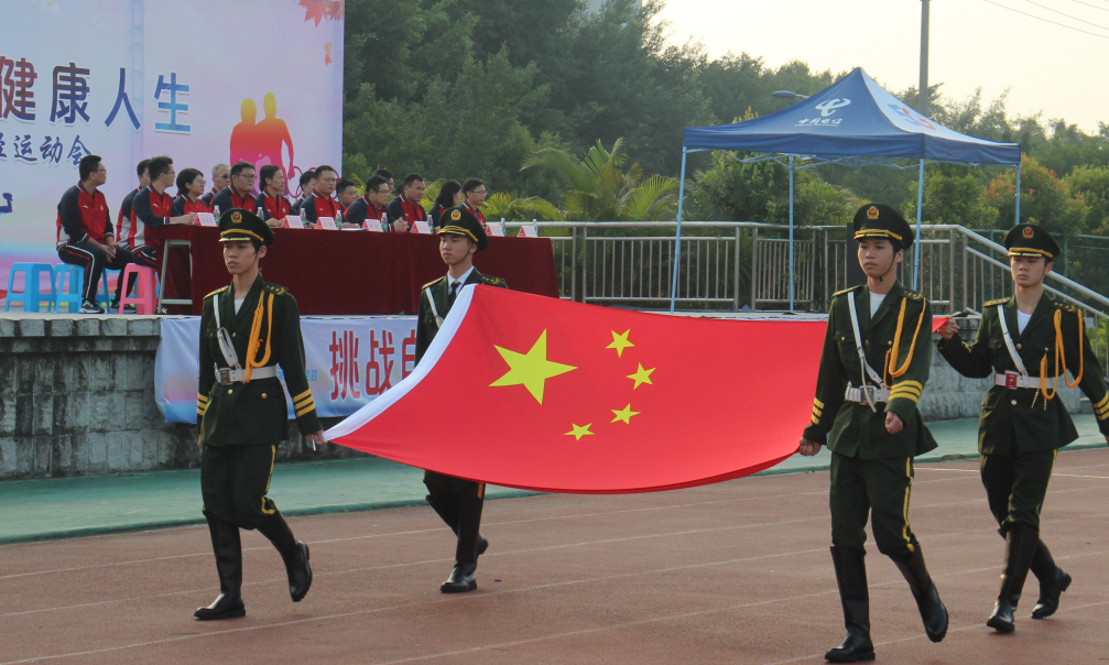 开幕式共有七项议程,现场气氛十分火热,同学们精神抖擞。在铿锵有力的节奏声——《运动员进行曲》中依次行进,国旗队、校旗队、会旗队、彩旗队、裁判员代表队、教职工代表队以及各系学生运动员方阵,一排排整齐的队伍气宇轩昂,神采奕奕地向主席台走来。各方阵队喊着响亮的口号,展示出当代技工学校学生的风采。