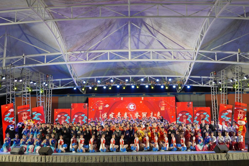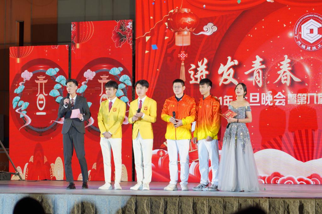 子去丑来腾锦绣,鼠归牛到竞辉煌,喜迎佳节,贺岁新春。2020年12月30日19:00分,城建师生,欢聚一堂,“迸发青春 夺冠未来”2021年元旦晚会暨第八届校园文化艺术节闭幕式在学校三区文体广场隆重举行。校长叶忠,副校长林勇刚,副校长肖创海,副校长计林,校长助理廖志友,校企合作单位深圳航空公司广州分公司财务部毛欣茵经理以及学校管理干部共同出席了晚会现场。
