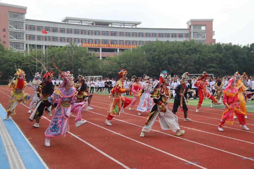 “咚咚锵,咚咚锵……”伴着强烈的锣鼓节奏,英歌舞队踏着变化多样的步伐,舞槌上下翻飞,令旗舞动,脸涂油彩的英歌舞者和鼓而舞,在田径场上汇聚成激越的变奏与力量。据悉,潮汕英歌舞是汉族舞蹈形式之一,流行于广东的汕头、揭阳、潮州、汕尾等地,作为国家级非物质文化遗产,今天的英歌都是数百年来祖辈们留下的文化瑰宝,并在当下持续展现鲜活的生命力。为推动非物质文化遗产传承发展,学校大力支持传统文化进校园,积极培养学生传统文化素养,让学生在活动中进一步感悟中华民族优秀的传统文化精神内涵,引导学生延续文化基因,增强文化自信,用优秀传统文化浸润学生心灵,在潜移默化中让学生真切感受到传统文化的魅力。