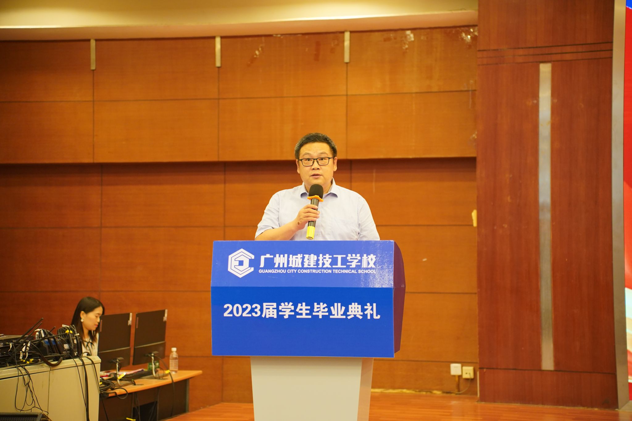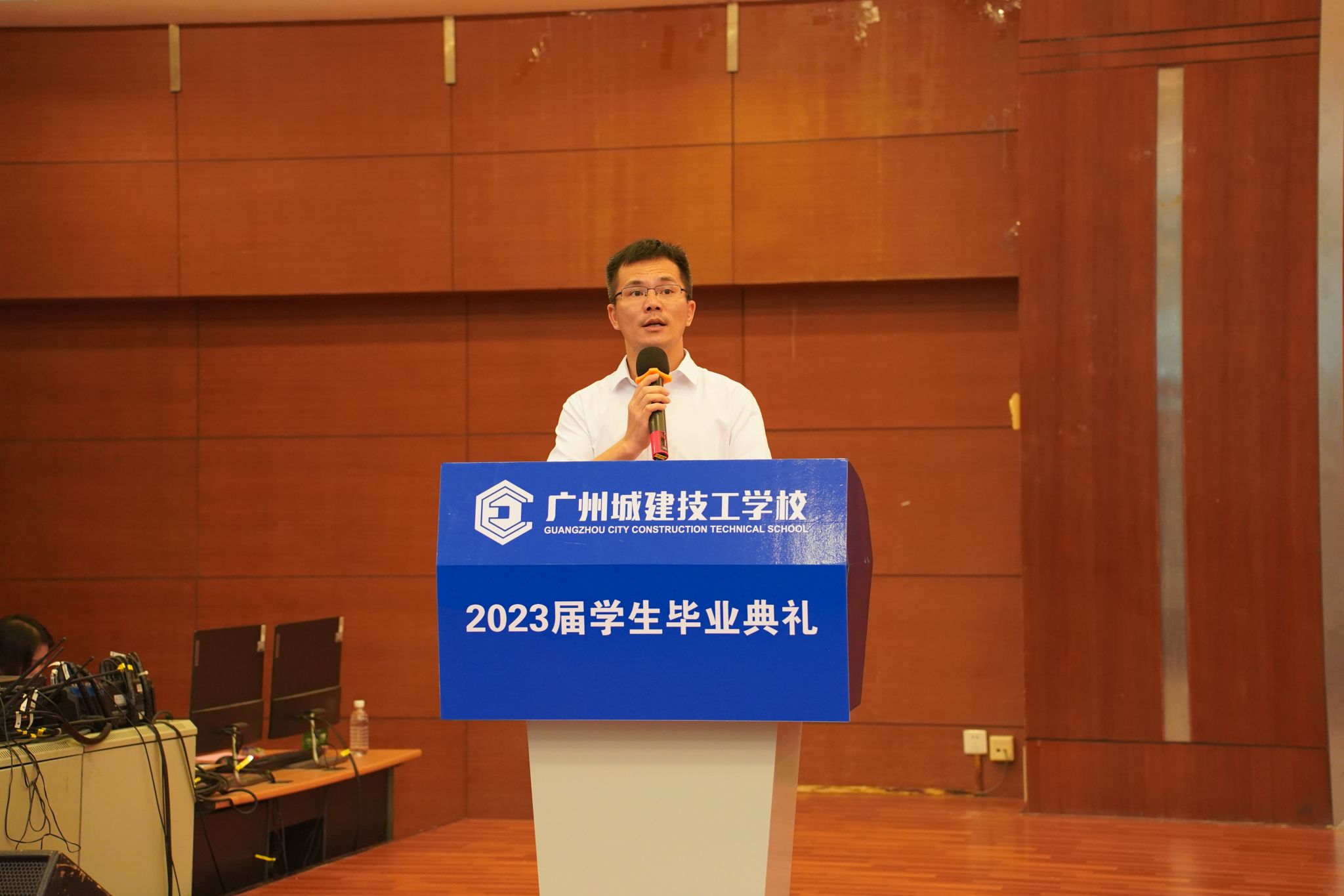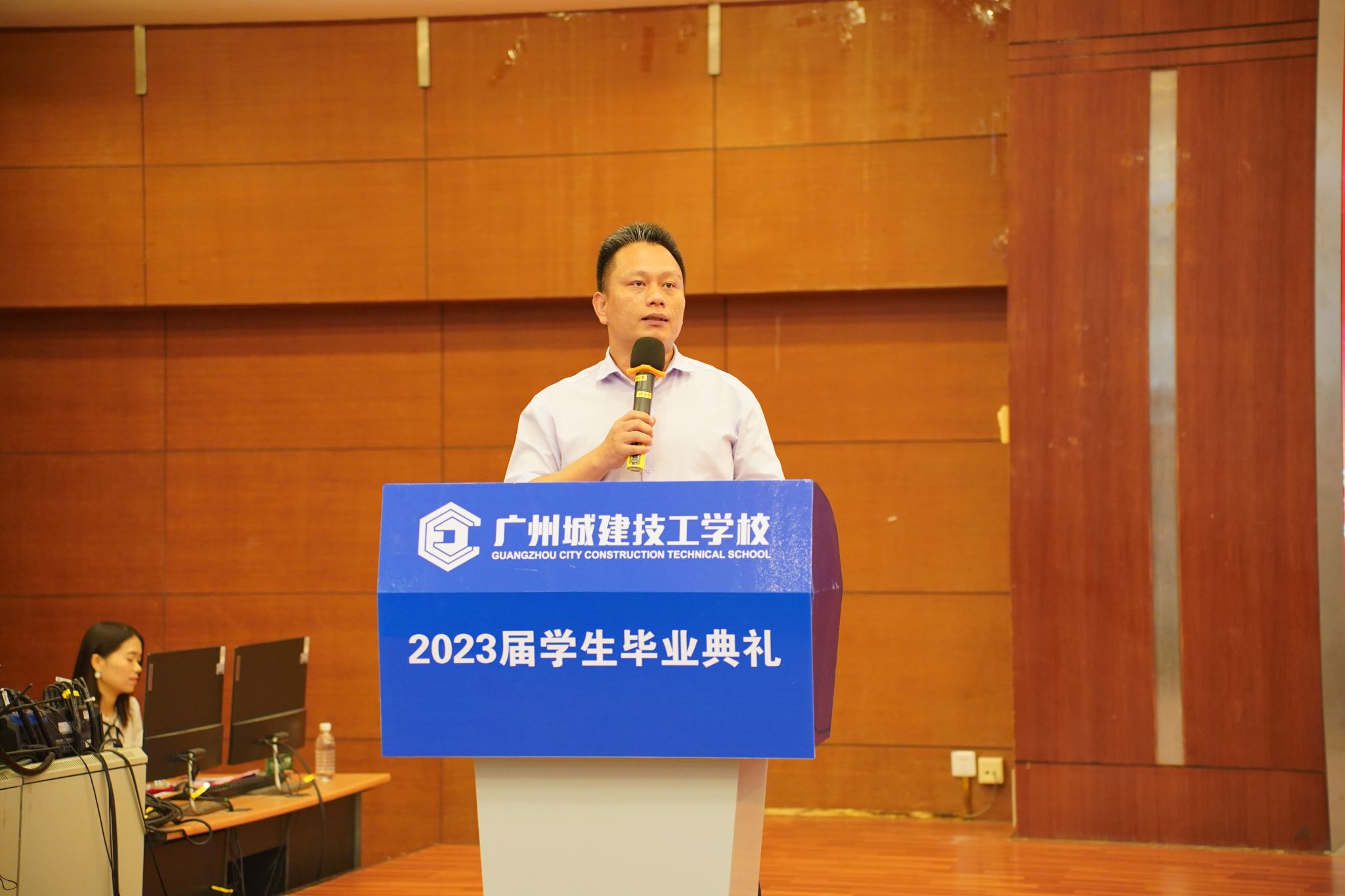 优秀毕业生谢明湛发言,他回顾了在校的学习与生活,代表2023届全体毕业生向辛勤付出的老师表示感谢。也希望各位同学都能做个努力、坚持、勤奋、上进的人。