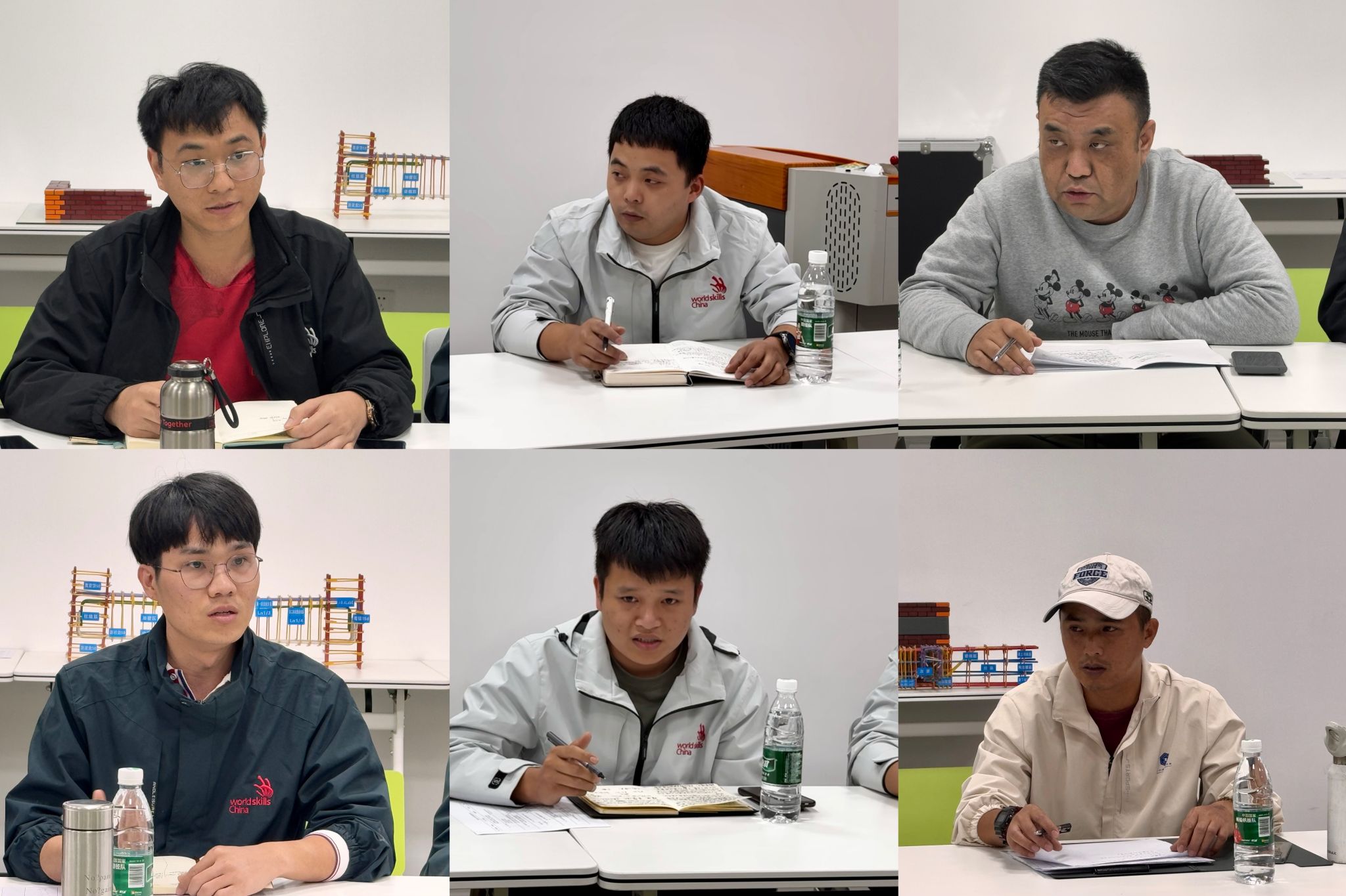 会议伊始,樊哲校长助理简要介绍本次会议目的后,混凝土建筑、砌筑、瓷砖贴面、油漆与装饰项目教练及集训选手先后发言,畅谈了集训以来的体会和感悟,总结了存在的不足和问题,同时提出了下阶段集训的计划和建议。