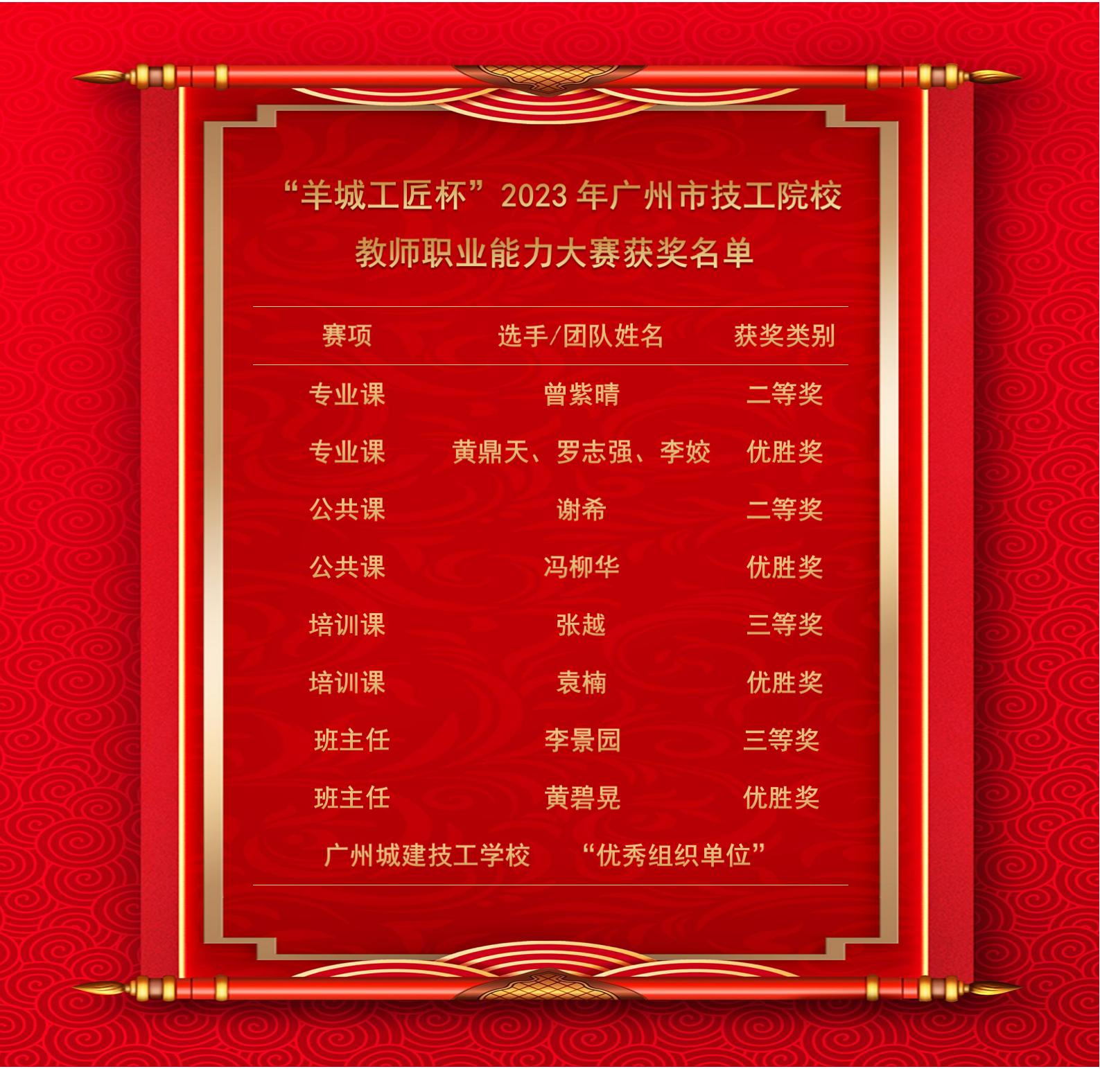 学校10名教师分8个项目参加了全部四类比赛,共荣获2个二等奖,2个三等奖,4个优胜奖,实现了全员获奖。同时学校荣获大赛“优秀组织单位”奖。