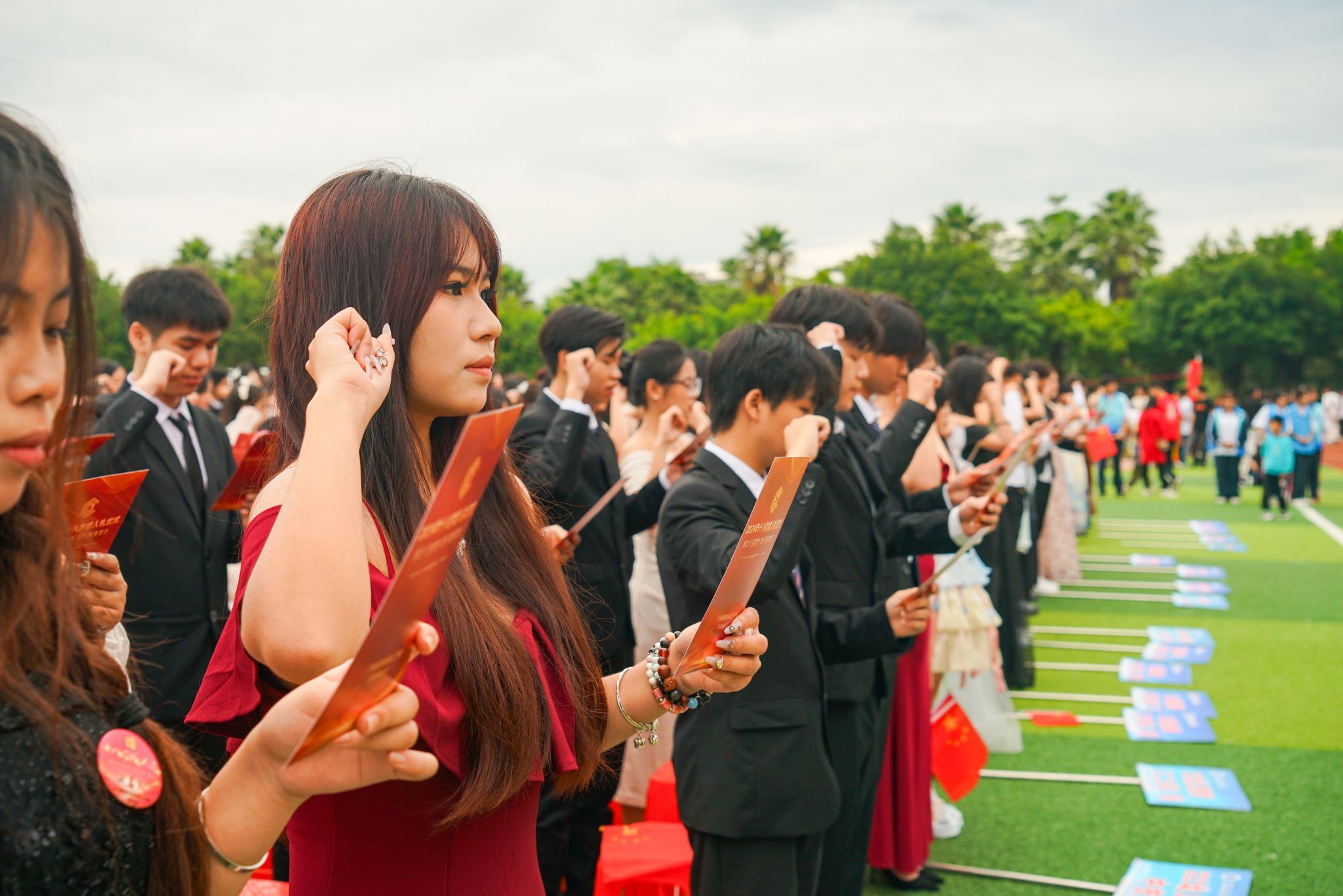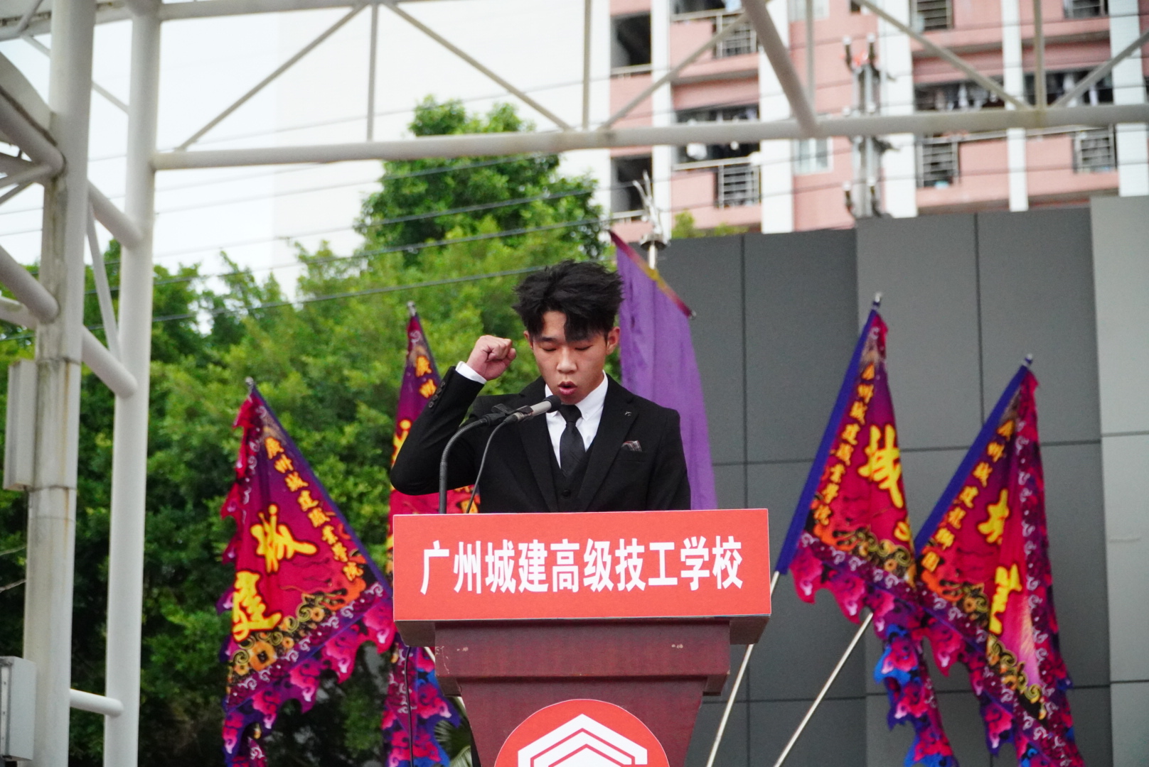 紧接着,在2021级新能源汽车检测与维修(五年制)2班闻仕鑫同学的领誓下,参礼学子进行了成人宣誓。他们用铿锵有力的声音宣读誓词,铮铮誓言表达了他们对未来的信心和决心;他们将用自己的智慧和力量,为实现中华民族伟大复兴的中国梦贡献青春力量。
